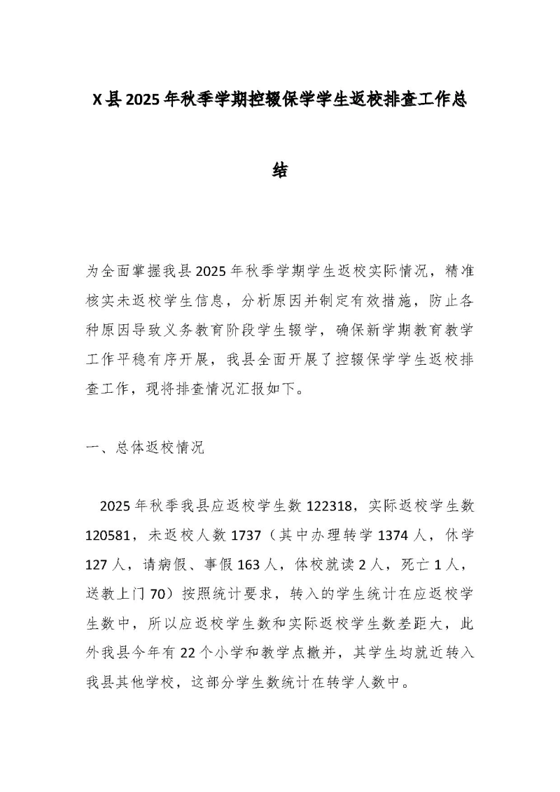 首页报告总结X县2025年秋季学期控辍保学学生返校排查工作总结