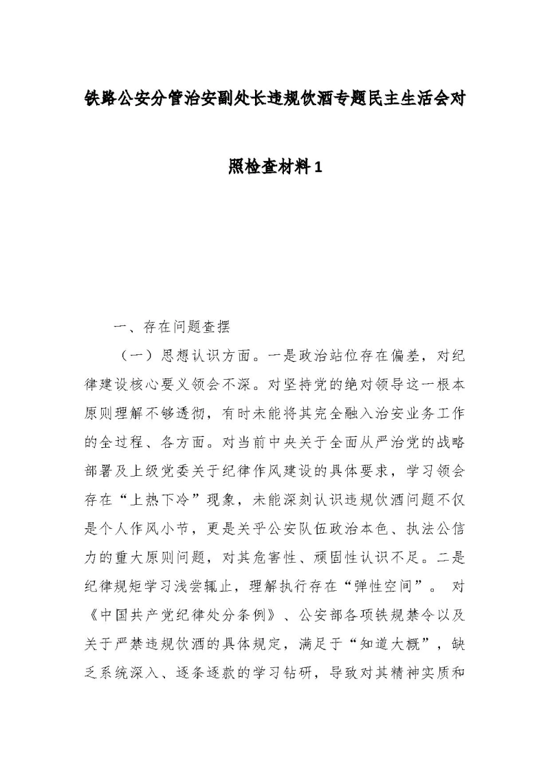 铁路公安分管治安副处长违规饮酒专题民主生活会对照检查材料1