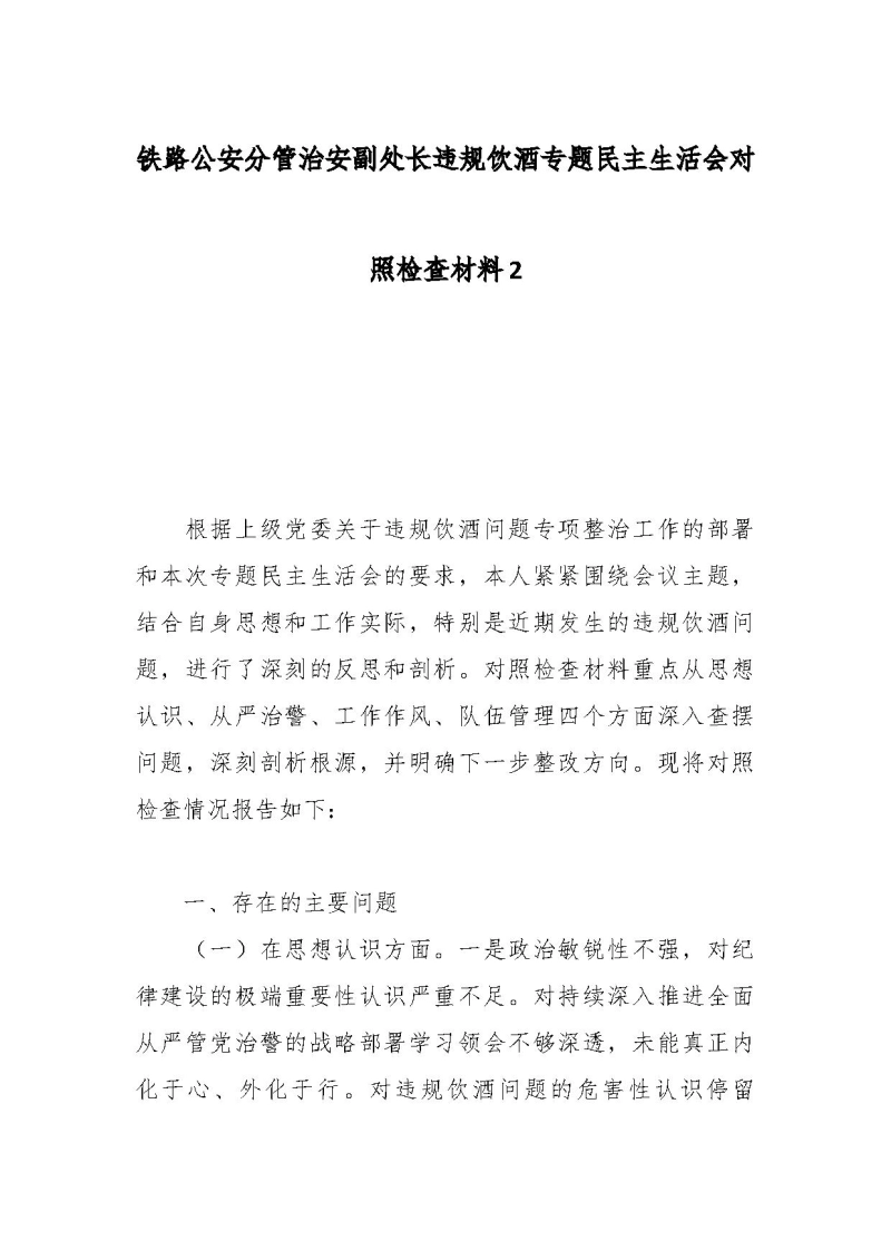 首页民主生活会铁路公安分管治安副处长违规饮酒专题民主生活会对照检查材料2